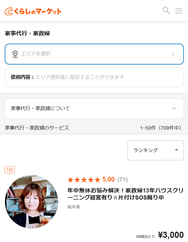 このたび、当店が「くらしのマーケット」家事代行・家政婦部門にて全国ランキング1位を獲得いたしました!